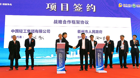 開幕式上,安勝杰作為致辭嘉賓發(fā)表講話,張曦與衢州市委常委、常務(wù)副市長周向軍簽署保利中輕-衢州市戰(zhàn)略合作協(xié)議,雙方將圍繞產(chǎn)業(yè)專項規(guī)劃、產(chǎn)業(yè)創(chuàng)新平臺、關(guān)鍵共性技術(shù)攻關(guān)、企業(yè)轉(zhuǎn)型升級等方面開展全方面合作。工業(yè)和信息化部消費品工業(yè)司二級巡視員謝立安和安勝杰、曹春昱、孫波等保利中輕領(lǐng)導(dǎo)共同見證簽約儀式。