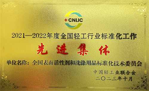 中國(guó)日用化學(xué)研究院作為秘書處承擔(dān)單位運(yùn)營(yíng)的全國(guó)表面活性劑和洗滌用品標(biāo)準(zhǔn)化技術(shù)委員會(huì)榮獲“2021-2022年度全國(guó)輕工行業(yè)標(biāo)準(zhǔn)化工作先進(jìn)集體”稱號(hào)。