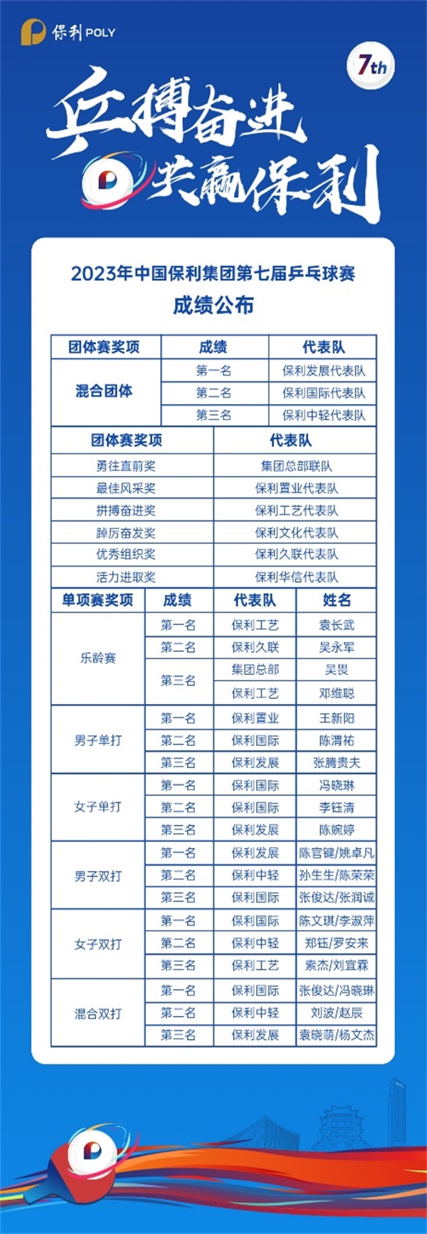 保利集團(tuán)第七屆乒乓球比賽獲獎(jiǎng)情況