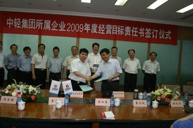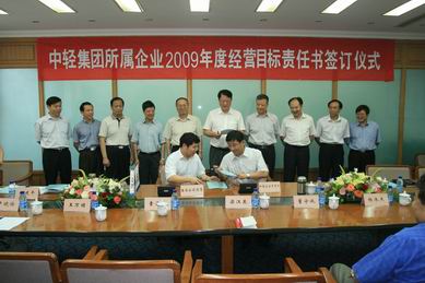 7月16日,中國輕工集團公司所屬二級企業(yè)2009年經營目標責任書簽訂儀式在集團總部舉行。集團公司領導、集團公司部門負責人、二級企業(yè)負責人出席了儀式。儀式由集團公司董事長陳學忠主持,陳鄂生總經理代表集團公司與所屬10家二級企業(yè)負責人簽訂了2009年度經營目標責任書。陳學忠董事長、陳鄂生總經理先后在簽字儀式上講話,要求各二級企業(yè)要認真分析金融危機對企業(yè)帶來的影響,找準問題,制定切實可行的辦法,力保全年任務的完成,為重組后新集團的快速發(fā)展打好基礎。