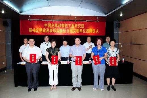 2012年6月8日,中國(guó)皮革和制鞋工業(yè)研究院召開(kāi)精神文明建設(shè)先進(jìn)集體和先進(jìn)個(gè)人表彰大會(huì)暨全國(guó)文明單位揭牌儀式,集團(tuán)公司董事長(zhǎng)、黨委書(shū)記陳鄂生,黨委副書(shū)記、紀(jì)委書(shū)記梁江東,皮革制鞋院院長(zhǎng)、黨委書(shū)記楊承杰,副院長(zhǎng)田美,黨委副書(shū)記、副院長(zhǎng)宋昕以及集團(tuán)公司人力資源部負(fù)責(zé)同志及全院職工出席了會(huì)議。會(huì)議由皮革制鞋院宋昕主持。