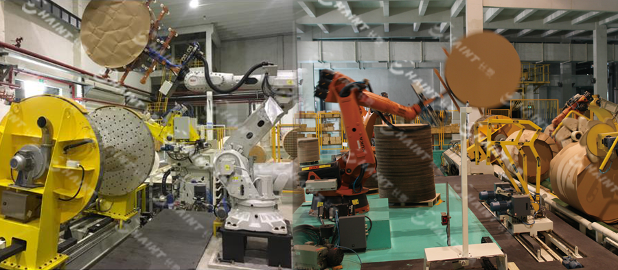 外封頭智能投送系統(tǒng)可同步抓取外封頭,并在溫度極高的熱壓盤處穩(wěn)定快速的放置外封頭,大大提高了生產(chǎn)節(jié)拍及人力成本,安全可靠,避免人工放置時的各種安全隱患。