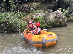 下午,大家有的同事結(jié)伴,有的家人同行,乘坐皮劃艇,順流而下,在急流中感受舟順?biāo)械目鞓罚諒潟r的碰撞,濺起的水花,伴隨著不斷的歡笑尖叫,好不快樂!到了漂流終點,大小朋友們都舍不得下船,還想再來一次!