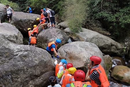 平江福壽山原生態(tài)的溯溪基地,巨石嶙峋,溪流蜿蜒,時(shí)而寬,時(shí)而窄,時(shí)而平緩,時(shí)而湍急,要想克服所有艱難險(xiǎn)阻到達(dá)終點(diǎn)欣賞大自然的美景就必須整個(gè)團(tuán)隊(duì)通力協(xié)作,共同前進(jìn)!