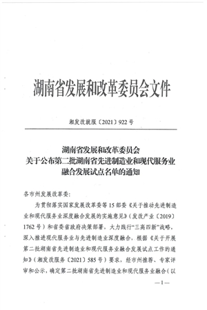 近日,湖南省發(fā)改委公布了納入第二批湖南省先進(jìn)制造業(yè)和現(xiàn)代服務(wù)業(yè)融合發(fā)展試點(diǎn)名單,全省11家園區(qū)和27家企業(yè)入選,長泰公司成功入選。
