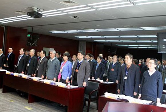 全體與會(huì)人員起立唱國(guó)歌