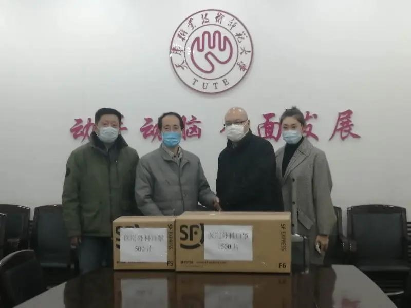 打贏疫情防控的人民戰(zhàn)爭(zhēng)總體戰(zhàn)狙擊戰(zhàn),中輕集團(tuán)所屬企業(yè)還積極幫助兄弟單位加強(qiáng)防控。3月10日、12日,中輕控股下屬中輕物產(chǎn)股份有限公司天津分公司分別向合作院校天津醫(yī)學(xué)高等專(zhuān)科學(xué)校捐贈(zèng)KF94口罩500個(gè)(價(jià)值13000元)、天津職業(yè)技術(shù)師范大學(xué)捐贈(zèng)醫(yī)用外科口罩2000個(gè)(價(jià)值12000元)。