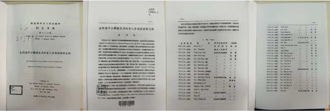 《本所歷年分離鑒定及貯養(yǎng)之各種發(fā)酵微生物》(共15頁,此為前四頁)