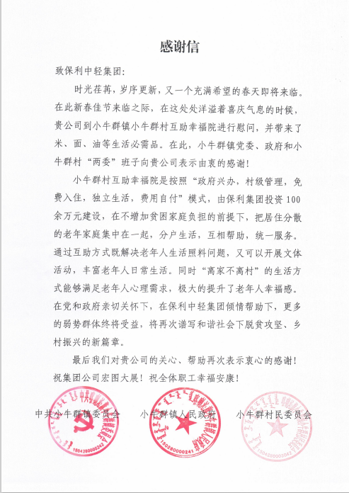 近日,為充分體現(xiàn)黨和國家以及央企對定點幫扶地區(qū)的人文關懷,保利中輕在內蒙古喀喇沁旗開展“振興喀喇沁·關心促和諧”春節(jié)慰問活動。