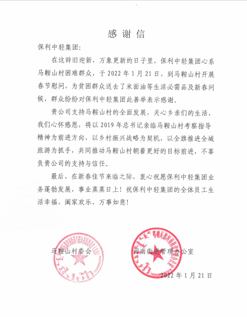 2022年,保利中輕將進一步貫徹落實好中央有關精神,扎實推進鞏固拓展脫貧攻堅成果同鄉(xiāng)村振興有效銜接,踐行央企社會責任,以優(yōu)異的幫扶成果向黨的二十大獻禮。