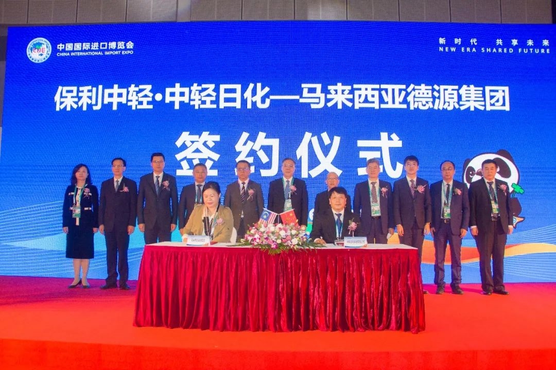 11月7日下午,在第四屆中國國際進(jìn)口博覽會上,保利中輕所屬中輕日化科技有限公司(以下簡稱中輕日化)與馬來西亞德源集團(tuán)(以下簡稱德源集團(tuán))簽署采購協(xié)議。保利集團(tuán)黨委常委、副總經(jīng)理張曦,保利中輕總經(jīng)濟(jì)師趙國昂,保利集團(tuán)戰(zhàn)投中心副主任杜鵬,中輕日化董事長耿濤、總經(jīng)理封益民出席簽約儀式。