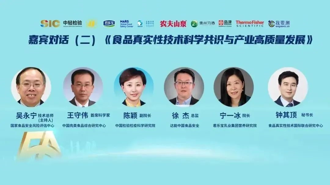 國家食品安全風(fēng)險評估中心技術(shù)總師吳永寧、中國肉類食品綜合研究中心首席科學(xué)家王守偉、中國檢驗檢疫科學(xué)研究院副院長陳穎、達能中國食品安全總監(jiān)徐杰、君樂寶乳業(yè)集團營養(yǎng)研究院院長寧一冰、食品真實性技術(shù)國際聯(lián)合研究中心秘書長鐘其頂就“食品真實性技術(shù)科學(xué)共識與產(chǎn)業(yè)高質(zhì)量發(fā)展”展開對話,從各自研究領(lǐng)域探討食品真實性現(xiàn)狀、真實性發(fā)展趨勢和企業(yè)如何保障產(chǎn)品品質(zhì)安全、真實。