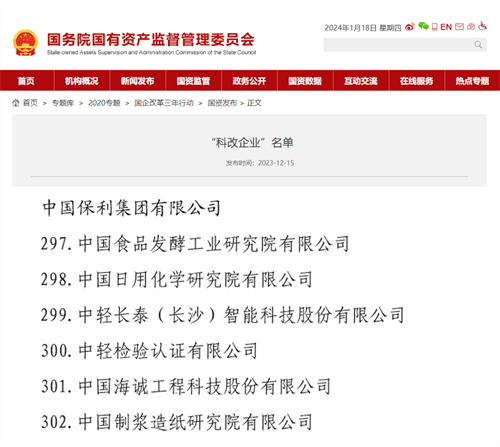 中國(guó)制漿造紙研究院新入圍國(guó)務(wù)院國(guó)資委“科改企業(yè)”名單,保利中輕科改企業(yè)增至6家。在國(guó)務(wù)院國(guó)資委年度專(zhuān)項(xiàng)考核中,中國(guó)食品發(fā)酵工業(yè)研究院、中輕檢驗(yàn)被評(píng)為“標(biāo)桿企業(yè)”,中國(guó)日用化學(xué)研究院、中輕長(zhǎng)泰被評(píng)為“優(yōu)秀企業(yè)”。