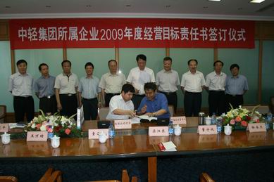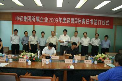 7月16日,中國輕工集團公司所屬二級企業(yè)2009年經營目標責任書簽訂儀式在集團總部舉行。集團公司領導、集團公司部門負責人、二級企業(yè)負責人出席了儀式。儀式由集團公司董事長陳學忠主持,陳鄂生總經理代表集團公司與所屬10家二級企業(yè)負責人簽訂了2009年度經營目標責任書。陳學忠董事長、陳鄂生總經理先后在簽字儀式上講話,要求各二級企業(yè)要認真分析金融危機對企業(yè)帶來的影響,找準問題,制定切實可行的辦法,力保全年任務的完成,為重組后新集團的快速發(fā)展打好基礎。