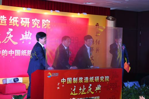 儀式上,中國(guó)輕工業(yè)聯(lián)合會(huì)會(huì)長(zhǎng)步正發(fā)、中國(guó)輕工集團(tuán)公司總經(jīng)理俞海星、中國(guó)制漿造紙研究院院長(zhǎng)曹春昱共同按下了新址啟動(dòng)裝置按鈕,標(biāo)志著中輕大廈正式啟用。