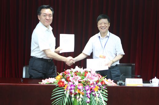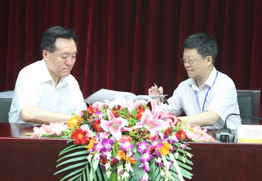 集團(tuán)公司總經(jīng)理俞海星與食品發(fā)酵院院長(zhǎng)蔡木易簽訂任務(wù)合同書(shū)