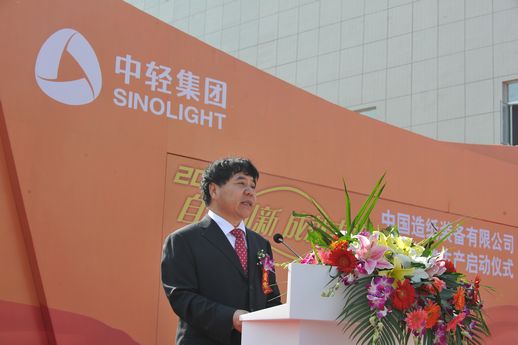 陳鄂生董事長代表中輕集團(tuán)致辭。他向出席啟動儀式的各位領(lǐng)導(dǎo)、各位專家、全國的優(yōu)秀企業(yè)家們表示熱烈的歡迎和衷心的感謝。他指出,永清基地的生產(chǎn)啟動,為集團(tuán)公司裝備板塊實(shí)現(xiàn)跨越式發(fā)展打下了堅(jiān)實(shí)的基礎(chǔ),成為集團(tuán)打造新的產(chǎn)業(yè)價值鏈的關(guān)鍵一環(huán)。中國造紙裝備有限公司要緊緊抓住國家振興裝備制造業(yè)的關(guān)鍵機(jī)遇,憑借在造紙領(lǐng)域的科研、咨詢設(shè)計(jì)、總承包、工程化推廣及實(shí)施能力,整合國內(nèi)外優(yōu)質(zhì)資源,突破造紙裝備關(guān)鍵技術(shù)瓶頸,實(shí)現(xiàn)集成創(chuàng)新,為造紙企業(yè)提供具有性價比優(yōu)勢的先進(jìn)成套裝備和優(yōu)質(zhì)服務(wù),擔(dān)當(dāng)起振興民族造紙裝備工業(yè)的歷史使命。他預(yù)祝造紙裝備自主化集成(永清)基地的生產(chǎn)啟動取得圓滿成功!