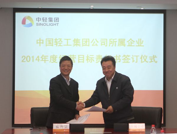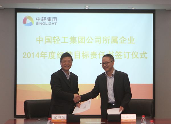 集團(tuán)公司總經(jīng)理俞海星與中輕物產(chǎn)公司總經(jīng)理錢小林簽訂經(jīng)營(yíng)目標(biāo)責(zé)任書