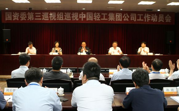 根據(jù)國務院國資委黨委統(tǒng)一部署,國資委第三巡視組近日進駐中國輕工集團公司(以下簡稱中輕集團)開展巡視。7月1日上午,國資委第三巡視組巡視中輕集團工作動員會召開。國資委第三巡視組組長韓修國就巡視工作作了講話,國資委巡視工作領導小組成員、巡視辦主任阮國平就配合做好巡視工作提出要求。中輕集團黨委書記、董事長陳鄂生主持會議并作表態(tài)發(fā)言。國資委第三巡視組副組長于學范、巡視組全體成員,國資委巡視辦有關人員出席會議。