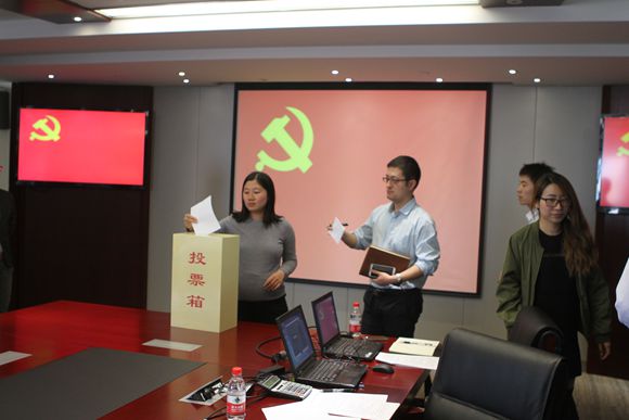 大會(huì)在雄壯的《國(guó)歌》聲中開始,會(huì)議審議通過(guò)了中輕集團(tuán)總部黨總支委員會(huì)選舉辦法,通過(guò)了大會(huì)監(jiān)票人、計(jì)票人。經(jīng)全體黨員投票選舉,馬思一、李義民、楊建軍、陳鐳、羅杰(按姓氏筆畫排序)等五名同志當(dāng)選為新一屆總支委委員。