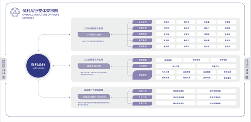 《保利品行-保利集團(tuán)行為手冊(cè)》搭建卓越行為識(shí)別體系框架,明晰了全體保利人的卓越行為倡導(dǎo),以共同行為準(zhǔn)則、基本禮儀規(guī)范、關(guān)鍵品牌觸點(diǎn)行為支撐品行之樹,規(guī)范全體保利人的知與行。